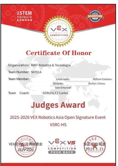 VEX V5 HIGH SCHOOL - JUDGES AWARD