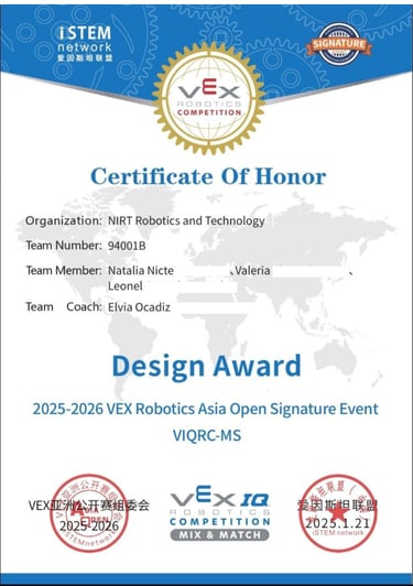VEX IQ MIDDLE SCHOOL - DESIGN AWARD
